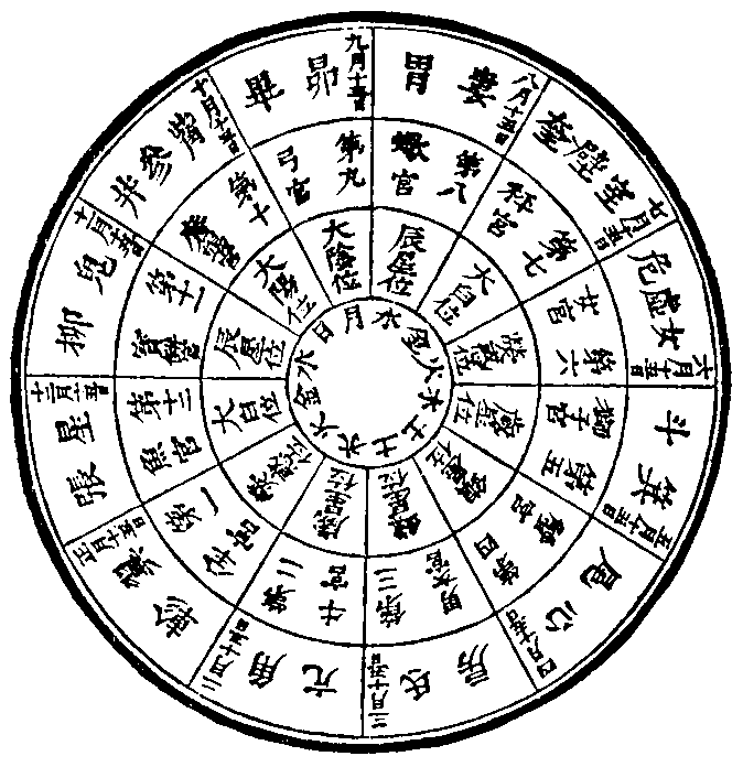 又日性刚义。月性柔惠。义以济下惠以及臣。而日月亦各以神宫均赐。五星以速至迟。即辰星太白荧惑岁镇。排为次第。行度缓急于斯彰焉。凡十二宫即七曜之躔次。每历示祸福经纬灾祥。又诸宫各有神形。以彰宫之象也。又一宫配管列宿九足。而一切庶类相感。